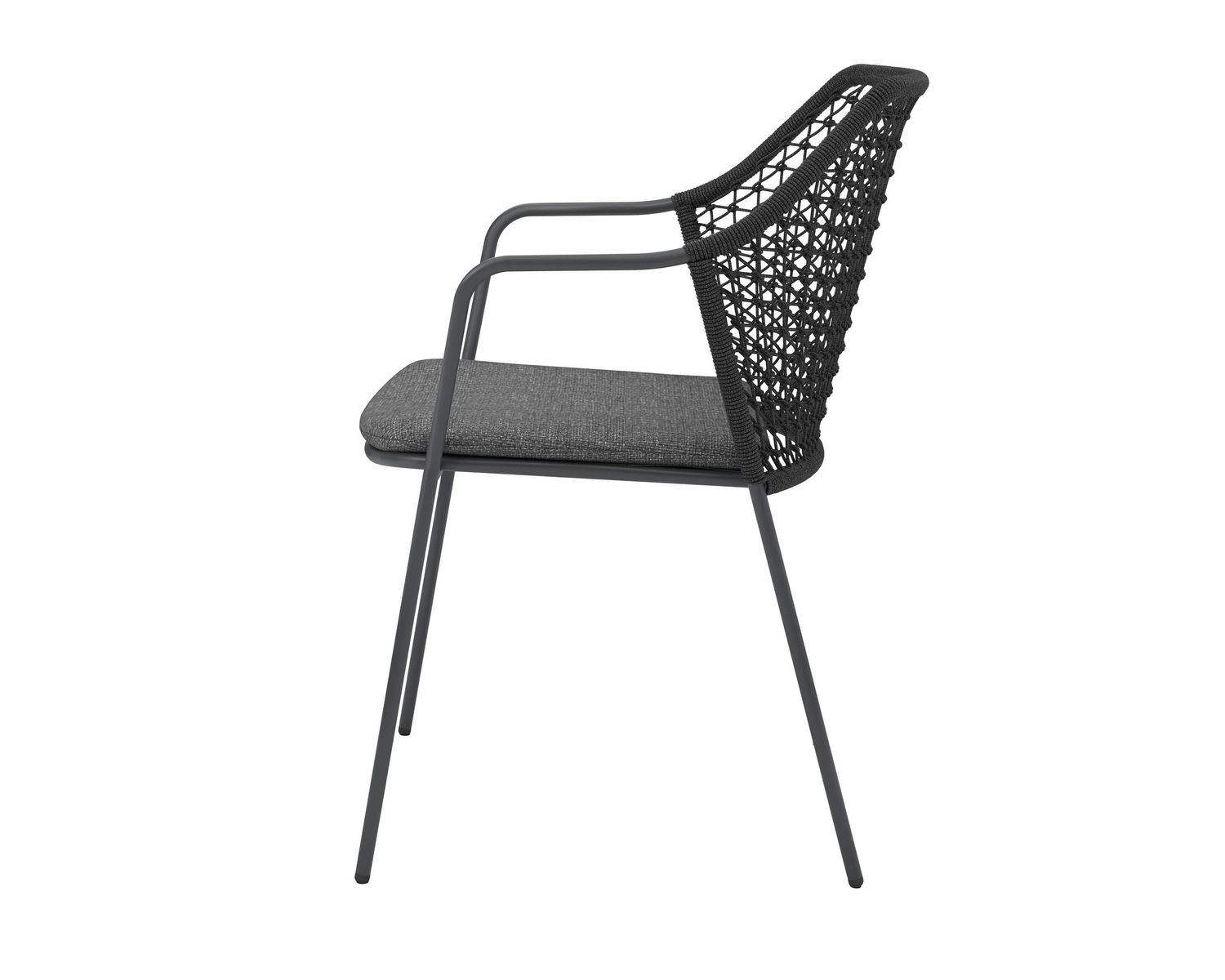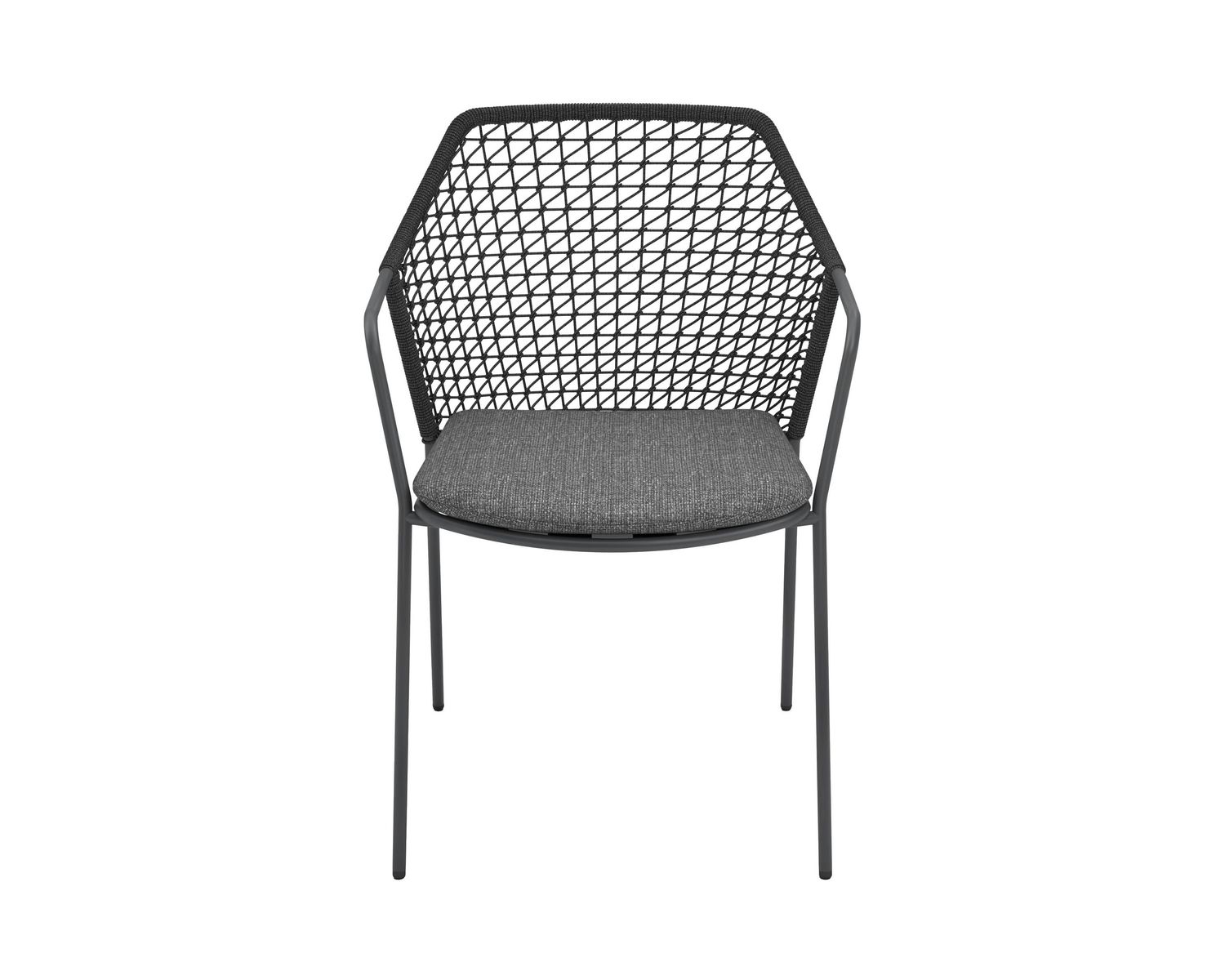 Dieser stapelbare Stuhl aus Stahl kommt mit einer eleganten Rückenlehne und Sitzfläche aus Seilgeflecht und ist stilvoll und langlebig. Das im Lieferumfang enthaltene Sitzkissen bietet extra Komfort und macht den Burano ideal für ausgedehnte Mahlzeiten und gesellige Beisammensein. Sein leichtes, minimalistisches Design passt auf jede Terrasse und in jeden Garten.