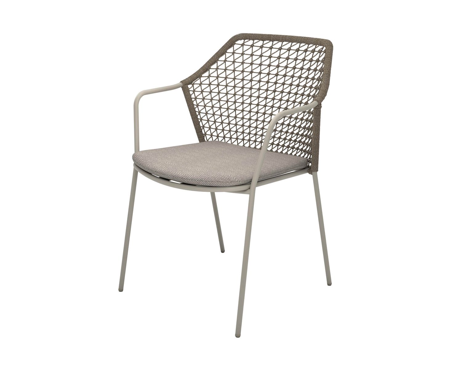 Dieser stapelbare Stuhl aus Stahl kommt mit einer eleganten Rückenlehne und Sitzfläche aus Seilgeflecht und ist stilvoll und langlebig. Das im Lieferumfang enthaltene Sitzkissen bietet extra Komfort und macht den Burano ideal für ausgedehnte Mahlzeiten und gesellige Beisammensein. Sein leichtes, minimalistisches Design passt auf jede Terrasse und in jeden Garten.