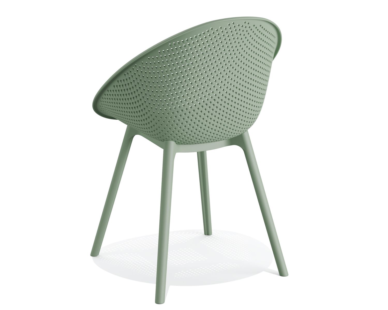 Der Qosy ist in den natürlichen Farben Sand und Grün erhältlich. Er ist aus Polypropylen gefertigt und daher für die ganzjährige Nutzung im Freien geeignet.