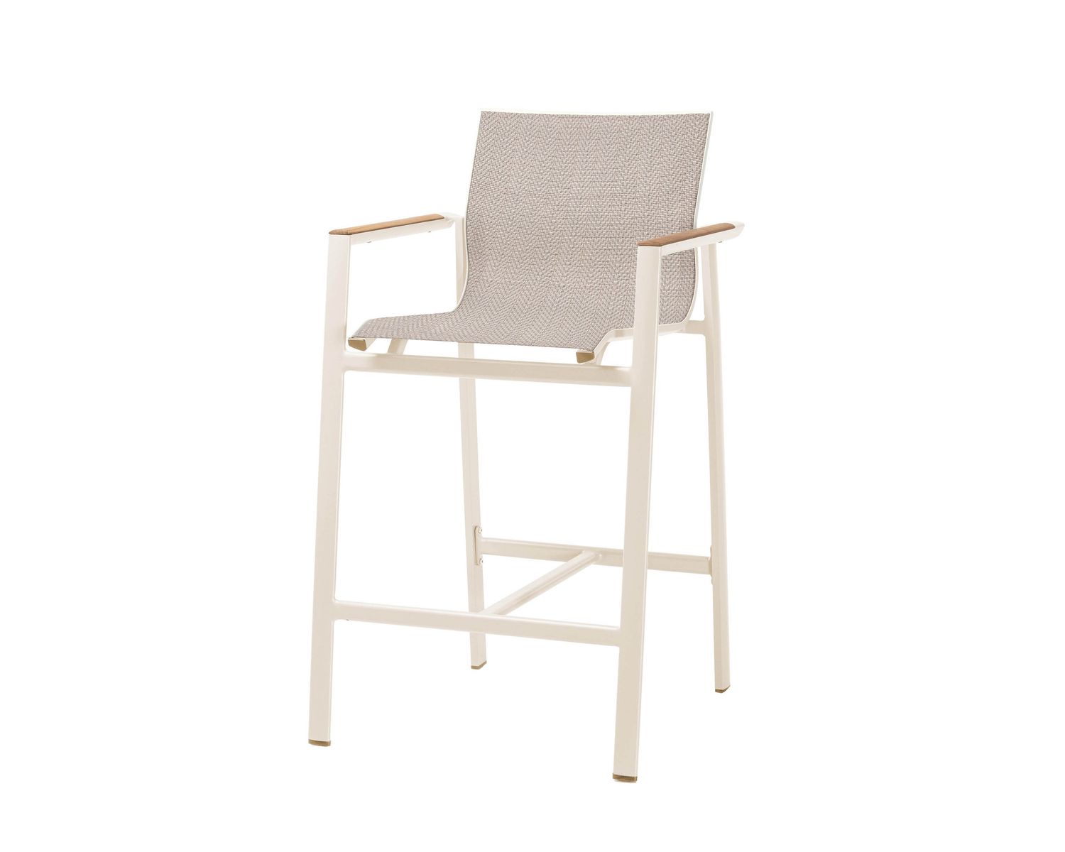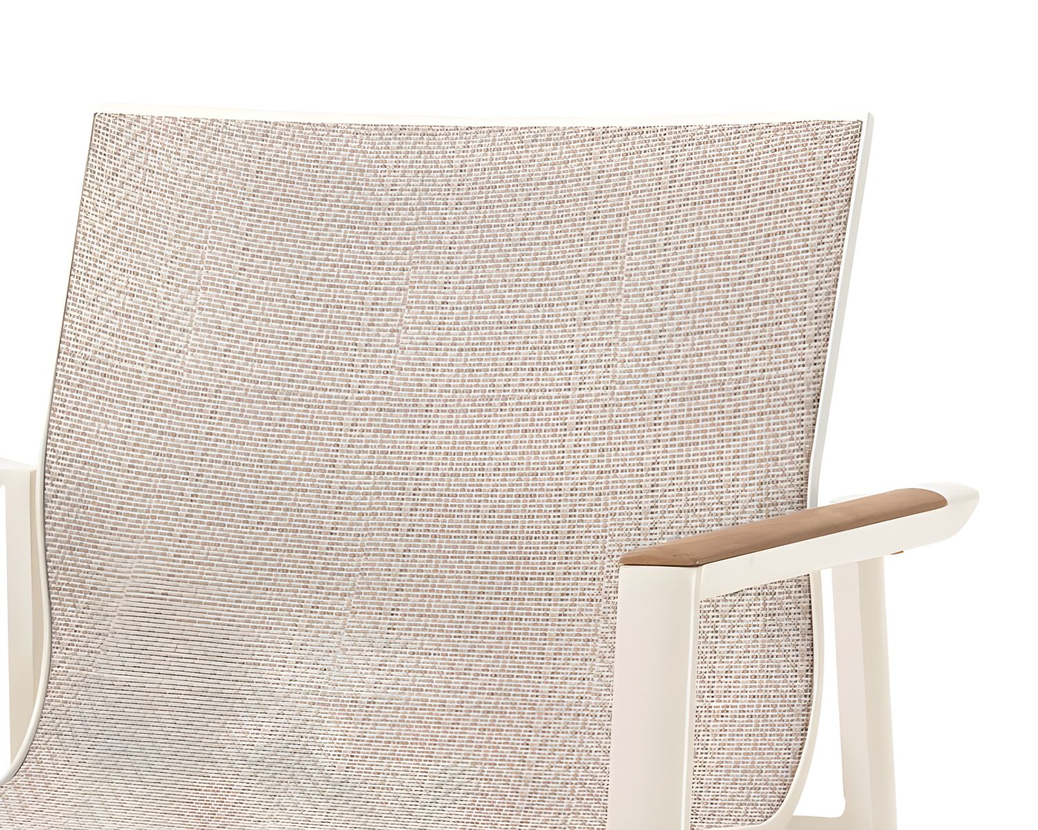 Auf dem leichten, rostfreien Aluminiumgestell befindet sich die aus einem Stück geformte Sitzfläche und Rückenlehne aus witterungsbeständigem Textilene. Die Armlehnen aus Teakholz verleihen dem Stuhl einen Hauch von Eleganz, während die ergonomisch gewölbte Rückenlehne für ein komfortables Sitzerlebnis sorgt.