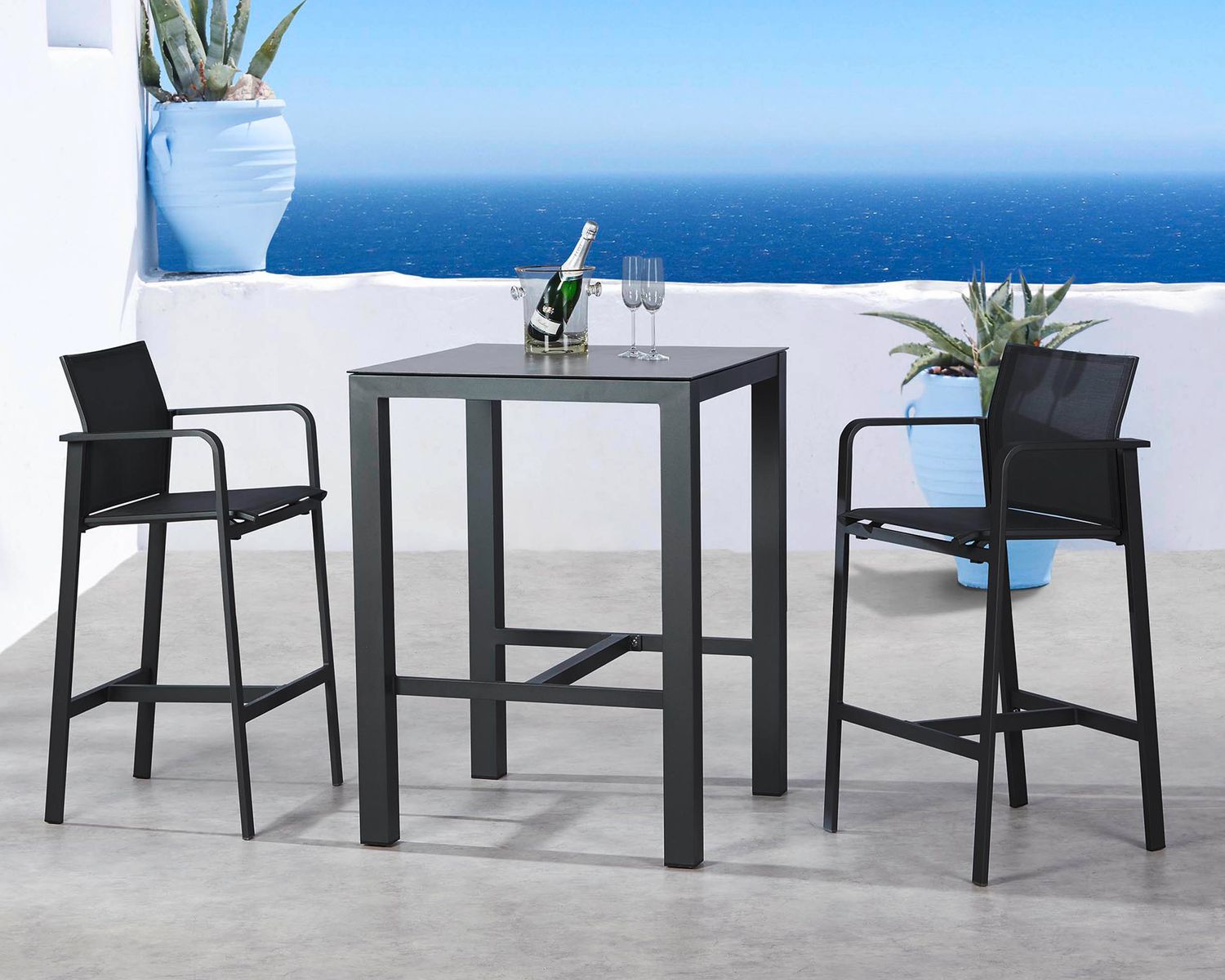 Moderner Bartisch mit einem Gestell aus rostfreiem Aluminium. Leichtgewicht und unkompliziert im Handling.