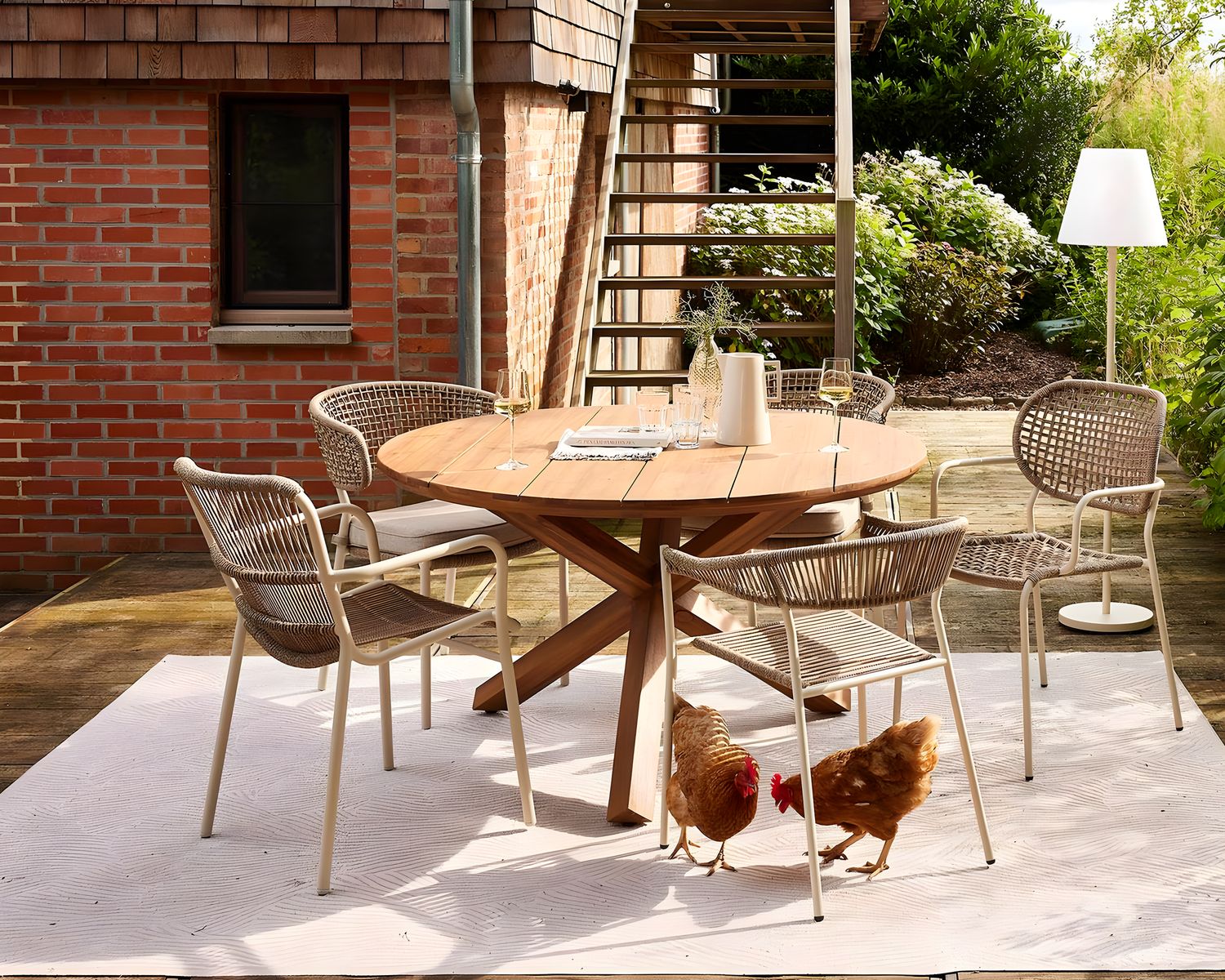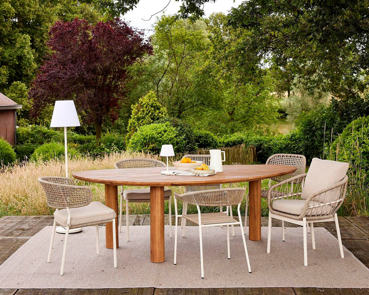 Das robuste Stahlgestell macht ihn zum idealen Dining-Sessel für den Außenbereich. Die elegante Rückenlehne und Sitzfläche aus Seilgeflecht verleihen ihm einen modernen Touch, und dank der leichten Konstruktion und klaren Linien bietet er eine vielseitige Lösung für Terrasse oder Garten. Sebastian ist stapelbar, pflegeleicht und vereint mühelos Stil mit Funktionalität.