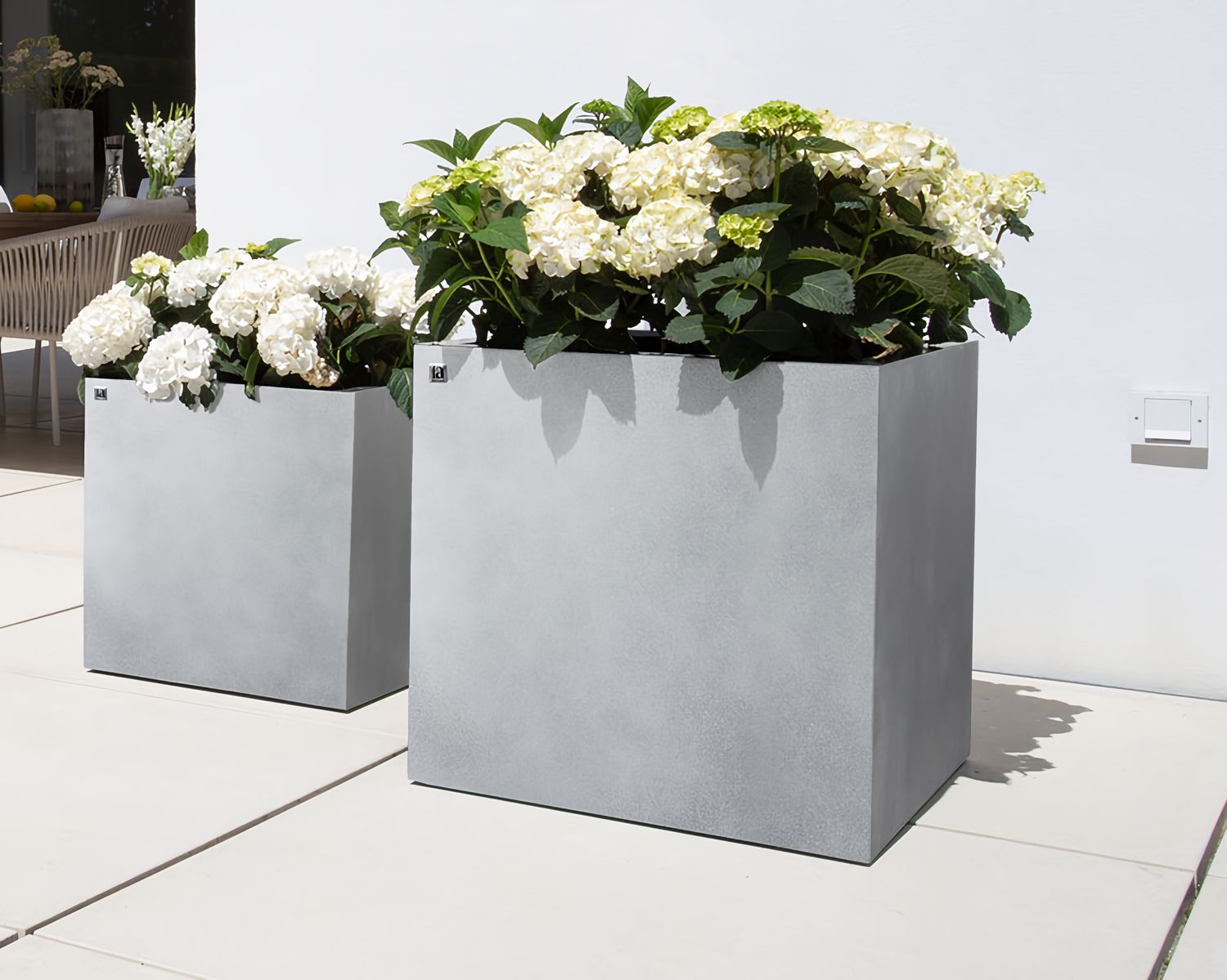 Gerade Linien und schlichte Formen bestimmen die Optik der Pflanzgefäße, Raumteiler, Konsolen, Schalen und Pflanzsäulen und eignen sich daher ideal für eine moderne Gestaltung von Außenbereichen.