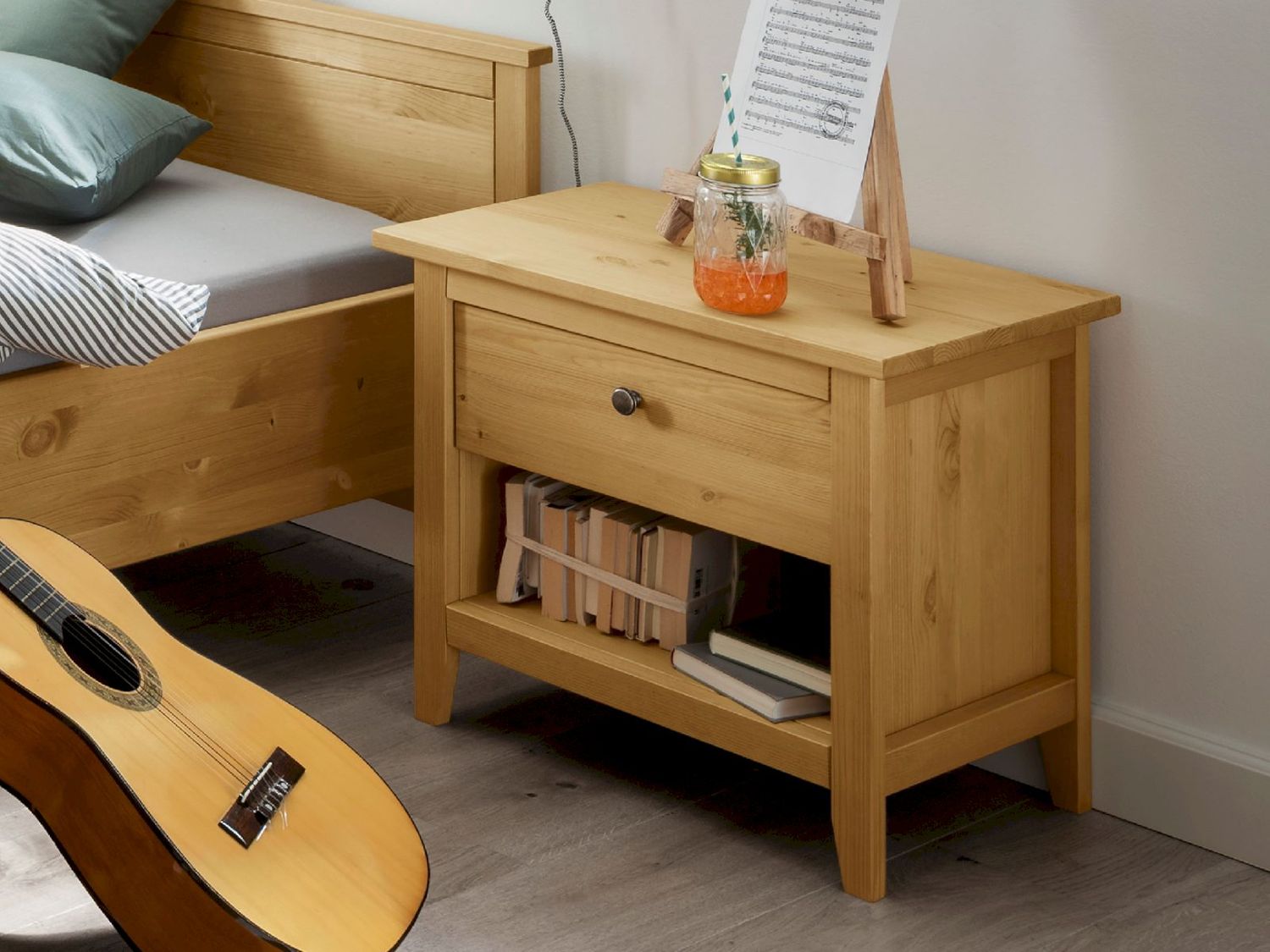Massivholz »Solvita« Nachtkonsole laugenfarbig