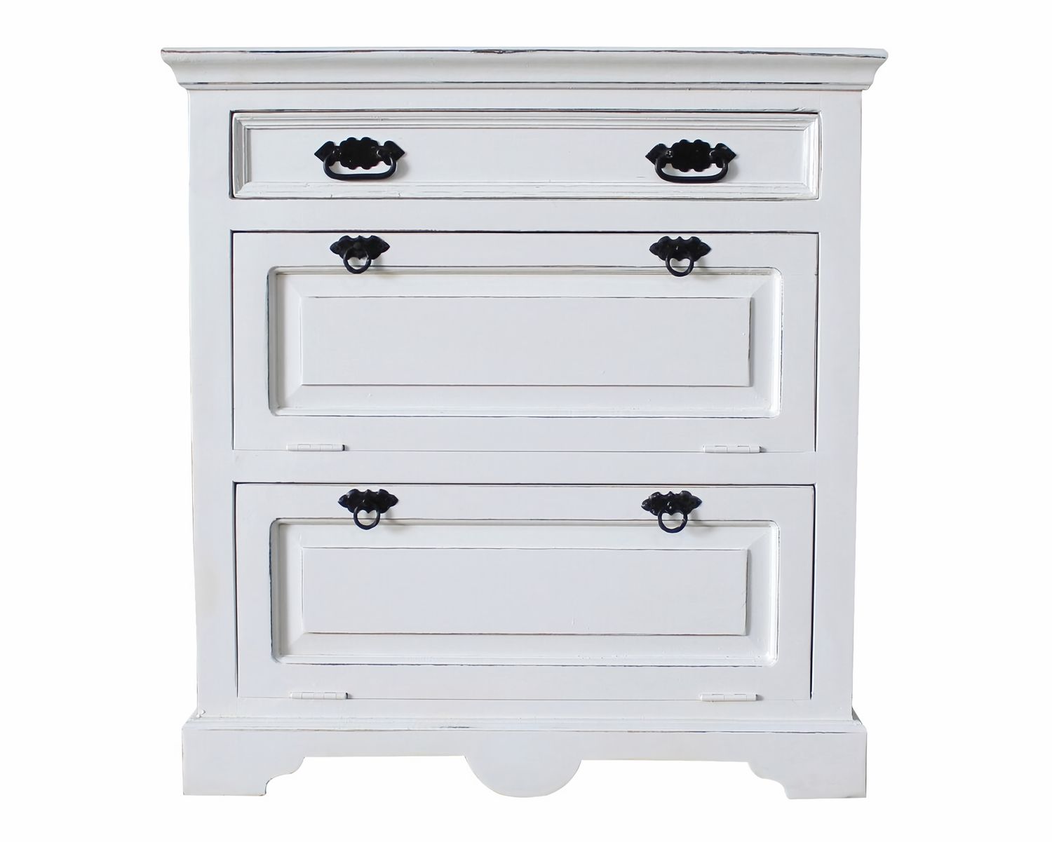 Der SIT Toledo Schuhschrank aus Mangoholz und MDF in antikweiß besteht aus einer Klappe und bietet Platz für Ihre Schuhe. Zudem hat die Oberfläche eine antike Optik und weist Gebrauchsspuren vor.